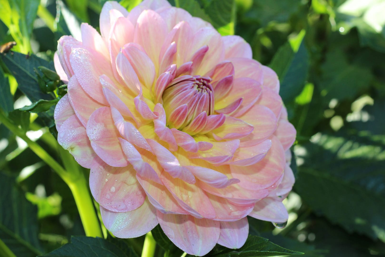 Short description A romantic waterlily dahlia with soft blush-pink petals that melt into warm, creamy-golden bases — luminous, gently cupped blooms perfect for classic garden borders and elegant cut-flower arrangements.